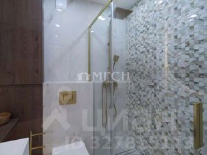 Санузел совмещенный: просторная душевая со сливным треком, стиральная машина, раковина, инсталяция ( унитаз с турбосливом).