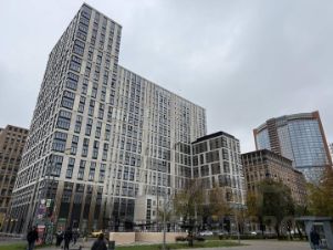 Окна выходят на обе стороны дома, на этаже всего 2 квартиры, очень удобная планировка. Окна общественных пространств выходят на стадион Динамо, а спальни в красивый внутренний двор комплекса
