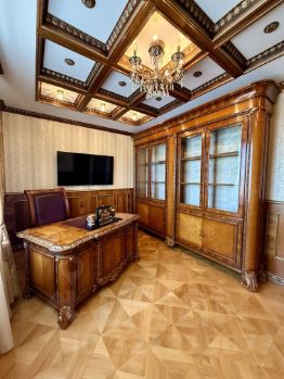 Планировкой предусмотрено: холл 14,7 м., просторная гостиная 35,9 м., спальня 13,8 м., взрослая спальня 15,4 м., кабинет 13,8 м., кухня 14,3 м., гостевой с/у, гардеробная комната, ванная комната, постирочная, с/у с душевой кабиной. Из окон открывается красивая панорама на силуэты небоскребов Москва-Сити.