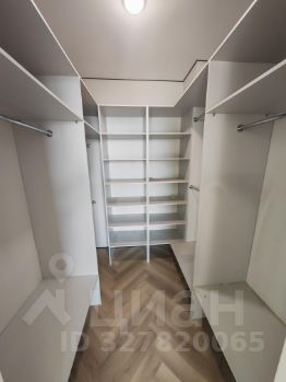 Мастер-спальня (15 м²): Приватная зона с отдельной гардеробной комнатой, что позволяет полностью освободить жилое пространство от шкафов. Окно ориентировано на небоскребы Сити.