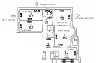 Квартира продается без отделки. В квартире удобная, большая кухня 15 м 2, четыре раздельные комнаты: 24,9 19,4 17,5 17,2 м2, по планировке предусмотрена вместительная гардеробная и два санузла. Высота потолков более 3 м. Окна квартиры выходят на три стороны северо-запад, юго-запад, северо-восток. Год постройки дома 2011, возведен по индивидуальному проекту.