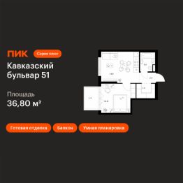 Продаётся 1-комн. квартира площадью 36,8 кв.м на 11 этаже 23 этажного дома (Корпус 3.2, Секция 2) проекта ПИК Кавказский бульвар 51. Светлый просторный подъезд на уровне земли, функциональная планировка, большие окна, c отделкой.