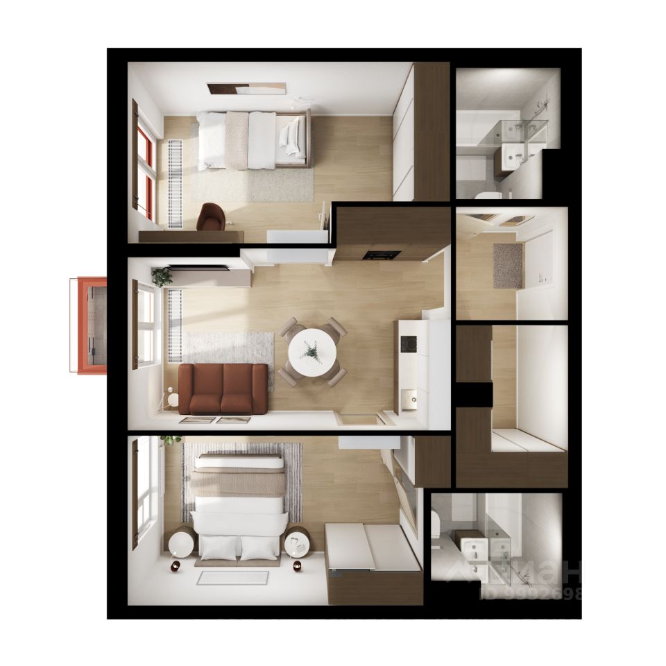 Продаётся 2-комн. квартира площадью 58,1 кв.м на 21 этаже 32 этажного дома (Корпус 3.6, Секция 3) проекта ПИК Кавказский бульвар 51. Светлый просторный подъезд на уровне земли, функциональная планировка, большие окна, c отделкой.
