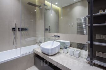 Столешница в ванной комнате сделана из крупноформатного керамогранита, как и керамика на стенах. Сантехника от известных брендов GESSI, Jacuzzi, Antonio Lupi.