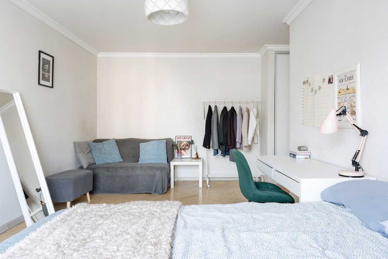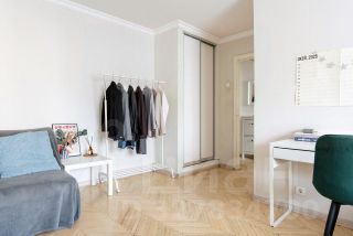 — квартира полностью готова для жизни — есть вся необходимая мебель и техника. Приятный ремонт в берлинском стиле — мебель Икеа, оригинальный паркет (не скрипит!), серые стены