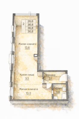 Арт. 132867125 1-комнатная квартира 36,8 м² в новом жилом комплексе бизнес-класса.
