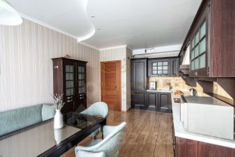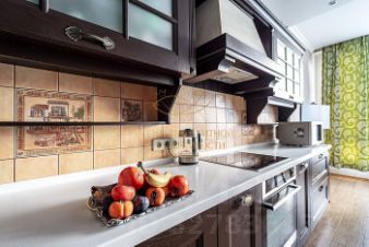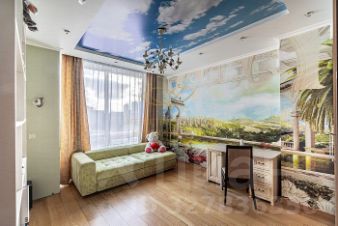 Ремонт сделан качественно, разноуровневые потолки, разные сценарии освещения. Кухня оборудована всей необходимой техникой. В ванной комнате установлена джакузи, раковина на две чаши.