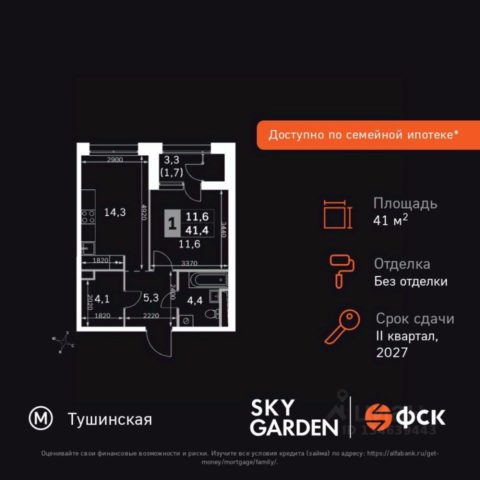 Продаётся 1-к квартира номер 507 общей площадью 41.4 кв.м. на 42-м этаже 44 этажного здания. Без отделки. Цена с учётом скидки.