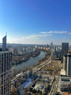 Квартира расположена на 40-м этаже современного монолитного дома 2022 года постройки. Высокий этаж обеспечивает потрясающие панорамные виды на Москву-реку и башню Роскосмоса, а также на современный городской ландшафт. Большие окна дают много естественного света и ощущение простора.