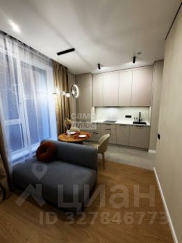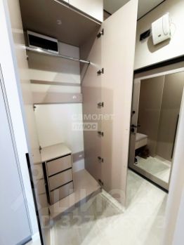 Общая площадь апартаментов 38,6 м2: кухня-гостиная - 16 м2, спальня 11 м2, гардеробная со входом из спальни 3,5 м2, санузел совмещенный. Высота потолков 3 м.