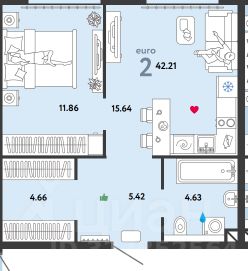Квартира с дизайнерским ремонтом. Кухня-гостиная площадью 15,2 кв. м с панорамным окном, уютная спальня. Санузел совмещенный, выполнен в современном стиле. Из окон открывается вид на панораму города и Москва-реку.
