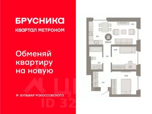 Квартира с кухней-гостиной и двумя спальнями в квартале "Метроном". Особенности планировки: вид во двор, новые лоты, предчистовая отделка.