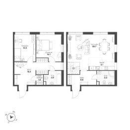 Продаётся 3-комнатная квартира в сданном доме (Корпус 1 (2 очередь 6 этап)), срок сдачи: I-кв. 2026, общей площадью 100.6 кв.м., на 5 этаже. Это город в городе, который не подстраивается под старые рамки, а задает новую планку и стандарт жилого района в России.
