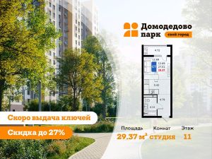 Выгода до 27%. Срок сдачи 2026 год. Продажа напрямую от застройщика в жилом комплексе комфорт класса "Домодедово парк" площадью 28.90 кв.м на 11 этаже 17 этажного дома. Квартира с предчистовой отделкой.