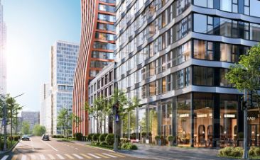 Башни объединены 4-этажными стилобатами с закрытыми дворами