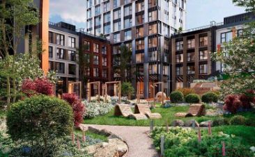 Ландшафтный дизайн с зелёными насаждениями и извилистыми дорожками