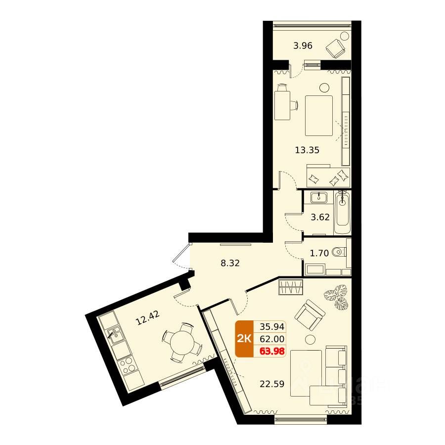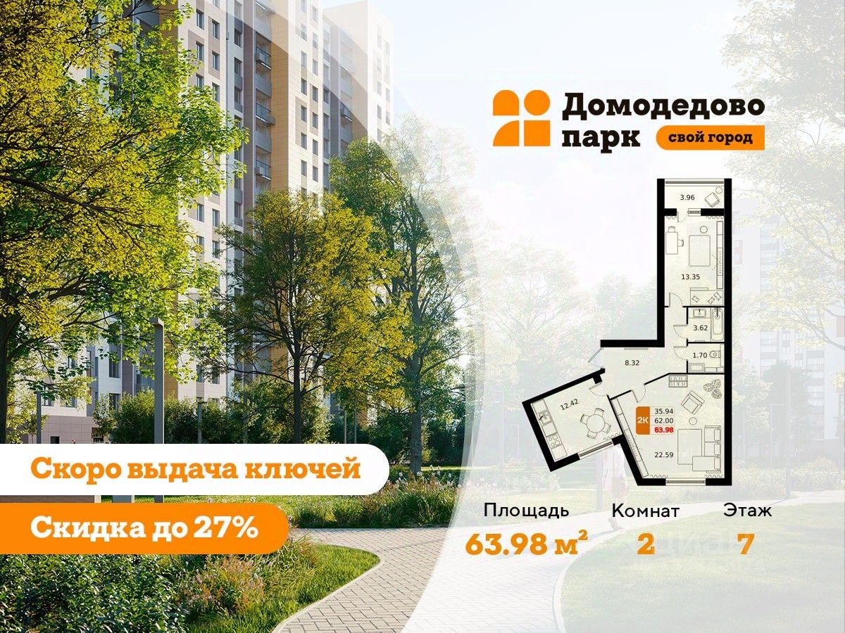 Выгода до 27%. Срок сдачи 2026 год. Продажа напрямую от застройщика в жилом комплексе комфорт класса "Домодедово парк" площадью 63.90 кв.м на 7 этаже 17 этажного дома. Квартира с предчистовой отделкой.