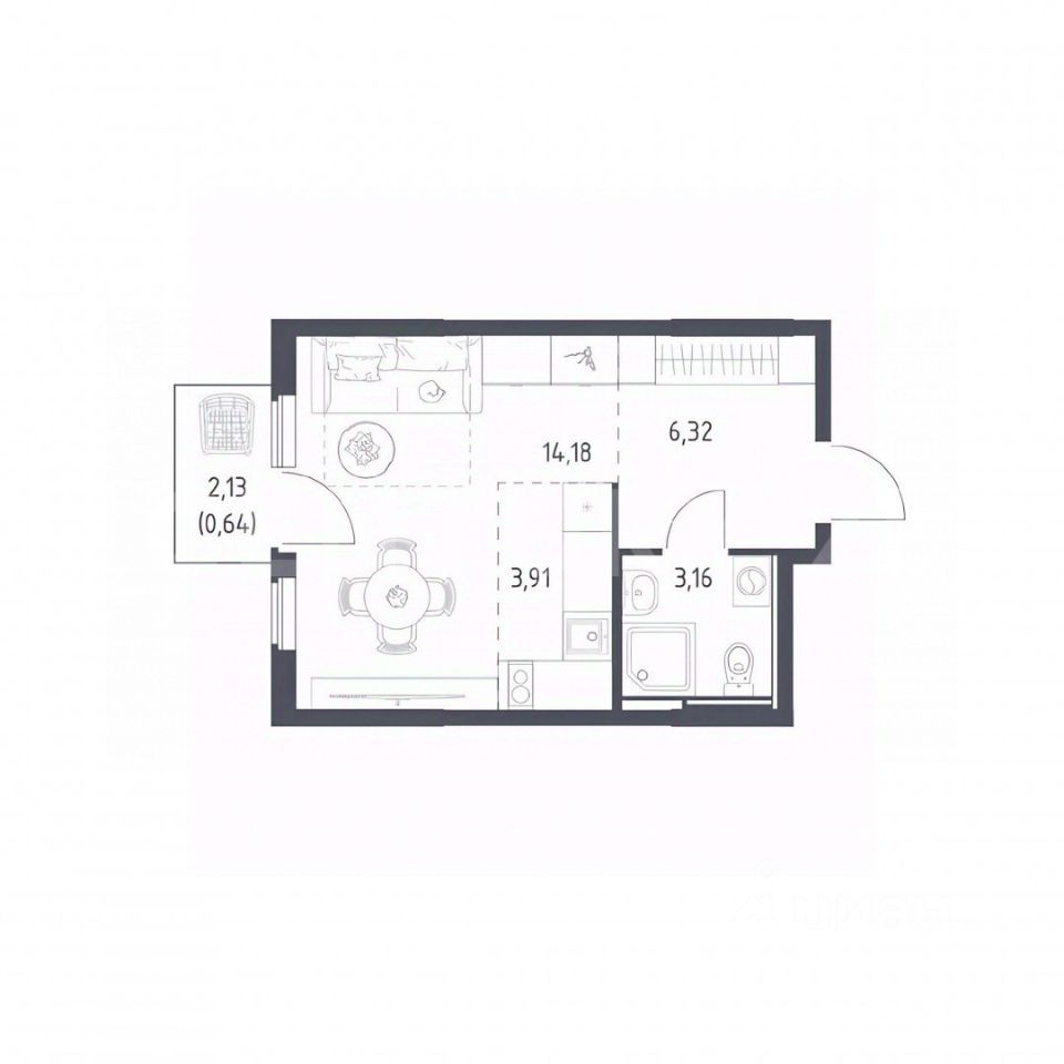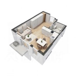 Светлая студия 28,2 м² с полной чистовой отделкой, мебелью, кухонным гарнитуром и кондиционером. Всё устанавливает застройщик. После получения ключей можно сразу жить — дополнительных вложений не требуется. Окна на улицу, на запад.