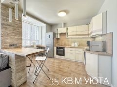 Квартира с качественным ремонтом в Москве, площадь с учетом утеплённой лоджии 35,42 кв.м. Квартира с встроенной кухней оснащенной бытовой техникой с продуманным наполнением: раковиной с диспоузером-измельчителем отходов, водяные фильтры, посудомоечная машина, духовой шкаф, варочная поверхность, вместительный холодильник.