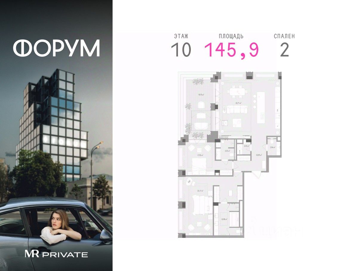 Продаётся 2-комнатная квартира общей площадью 145.86 м² в клубном доме Форум.