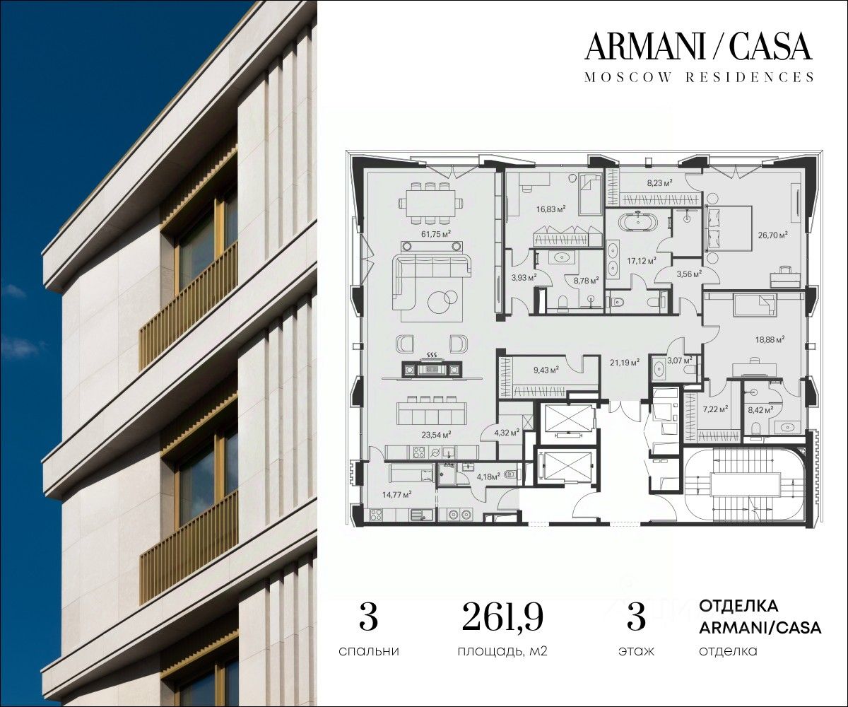 Armani / Casa Moscow Residences — первый и единственный в России проект, созданный в партнерстве с легендарным итальянским домом Armani. Это не просто жилье, а произведение искусства, где каждая деталь отражает безупречный вкус и изысканность итальянского стиля.