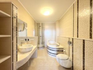Планировка идеально подойдет для семьи с детьми : большая кухня-гостиная с обеденной зоной и выходом на утепленную лоджию, которую можно использовать как зимний сад, кабинет, хозяйская спальная комната со своим сан.узлом, огромная детская комната (40кв.м.) так же со своим отдельным сан.узлом, для хранения вещей есть гардеробная комната, при входе гостевой сан.узел и вместительный шкаф-купе.