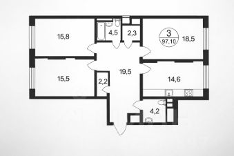 Три комнаты (18,5 кв.м + 15,8 кв.м. + 15,5 кв.м).