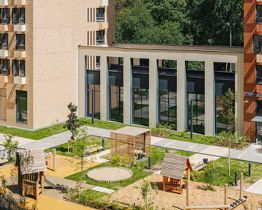 В проекте жилые дома, 2 детских сада на 150 и 235 мест, школа на 1100 мест и подземные паркинги на 525 машиномест. В зелёных дворах-парках будут места для отдыха, современные детские и спортивные площадки. На первых этажах откроются магазины, кафе и другие сервисы — за кофе и свежим хлебом к завтраку можно будет просто спуститься на лифте.