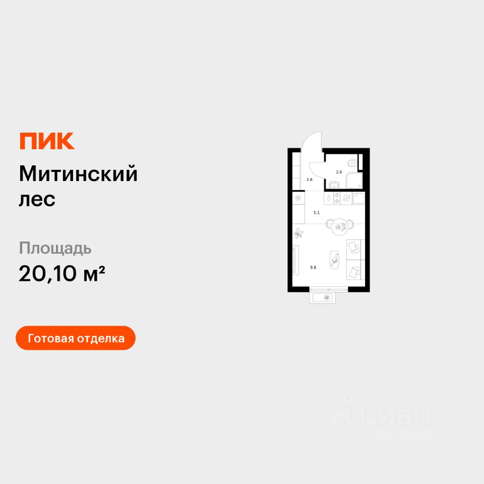 Продаётся квартира-студия площадью 20,1 кв.м на 20 этаже 27 этажного дома (Корпус 14, Секция 4) проекта ПИК Митинский лес. Светлый просторный подъезд на уровне земли, функциональная планировка, большие окна, c отделкой.