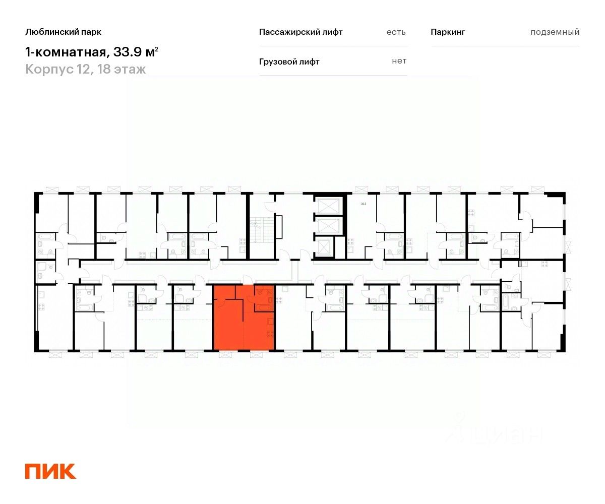 Продаётся 1-комн. квартира площадью 33,9 кв.м на 18 этаже 25 этажного дома (Корпус 12, Секция 1) проекта ПИК Люблинский парк. Светлый просторный подъезд на уровне земли, функциональная планировка, большие окна, c отделкой.