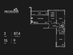 Продается 3-комнатная квартира в ЖК Рассказово на 9 этаже. Общая площадь квартиры составляет 87,4 кв.м. Квартира без отделки.