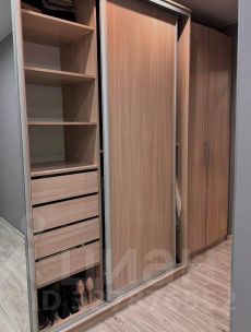 Квартира продается с мебелью и бытовой техникой. На кухне встроенный гарнитур с холодильником, посудомоечной машиной, электронной плитой и духовым шкафом. В жилой комнате остаются кондиционер, раскладной диван, ТВ-тумба и оборудованное рабочее место у окна. В санузле душевая кабина, стиральная машина. Для хранения вещей есть вместительный встроенный шкаф-купе в прихожей, также в прихожей установлен видеодомофон.