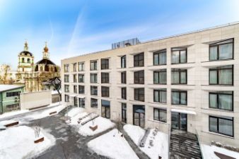 Квартира с 3 спальнями в комплексе Балчуг Резиденс на Золотом острове — центральная часть острова Балчуг, омываемого с двух сторон Москвой-рекой и Обводным каналом от архитектора Хади Тегерани. На весь комплекс всего на 388 апартаментов, в 2,9 км от Кремля. Можно сделать 4 спальни без дополнительных вложений. Вид на Никольскую церковь.