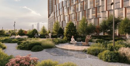 Приватный двор — продолжение жилого пространства с атмосферой роскошного загородного отеля. Натуральные материалы, всесезонный сад из более чем 600 деревьев и кустарников. Во дворе — авторская мебель индивидуального производства, пергола с водной чашей и развивающая детская площадка. Вечерняя ландшафтная подсветка создаёт неповторимый уют.