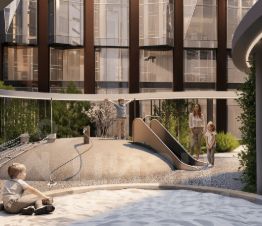 Приватный двор — продолжение жилого пространства с атмосферой роскошного загородного отеля. Натуральные материалы, всесезонный сад из более чем 600 деревьев и кустарников. Во дворе — авторская мебель индивидуального производства, пергола с водной чашей и развивающая детская площадка. Вечерняя ландшафтная подсветка создаёт неповторимый уют.