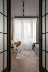 Удачная планировка с 2-мя французскими балконами в виде распашных окон в пол позволяет еще больше наслаждаться видами набережной Москвы реки.