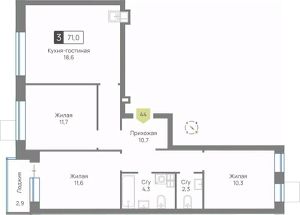 Продаётся 3-комнатная квартира в строящемся доме (Корпус 5), срок сдачи: III-кв. 2028, общей площадью 71 кв.м., на 8 этаже. Лесная Отрада спроектирована как продолжение архитектурного ансамбля Жилого и Клубного кварталов Отрада, сочетающих экодизайн со стилем модерн, а большую площадь остекления фасадов с современными и природными материалами.