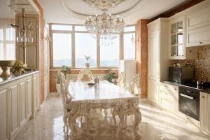 Использованы качественные натуральные материалы: художественный паркет, декоративная лепнина, шелковые обои.