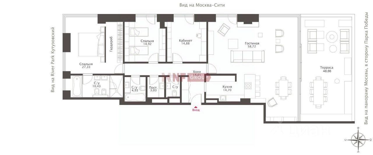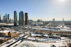 Виды из окон: на Москва-Сити, Живописный мост и панораму города.