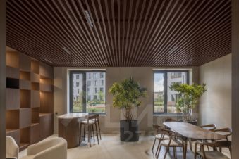Квартал продуман до мелочей. В нём обустроен двор с газонами и прогулочными аллеями, видовыми площадками для отдыха с деревянными шезлонгами и перголами. Резиденты будут наслаждаться эффектной панорамой Москвы-реки с шестиметровой возвышенности стилобата.