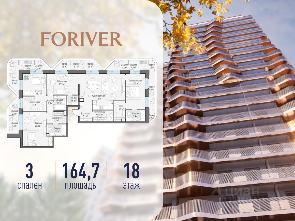 Прямая продажа от застройщика. В жилом квартале, расположенном в Даниловском районе Москвы, продаётся 3-комнатная квартира площадью 164.70 кв.м без отделки. Квартира расположена на 18 этаже 19-этажного дома, корпус Line 10, в жилом квартале бизнес-класса Foriver.