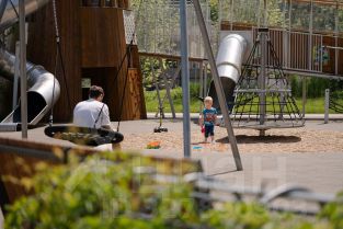 Квартал продуман до мелочей. В нём обустроен двор с газонами и прогулочными аллеями, видовыми площадками для отдыха с деревянными шезлонгами и перголами. Резиденты будут наслаждаться эффектной панорамой Москвы-реки с шестиметровой возвышенности стилобата.