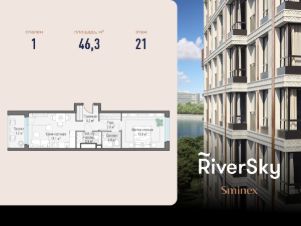 Прямая продажа от застройщика. В жилом квартале, расположенном в Даниловском районе Москвы, продаётся 1-комнатная квартира площадью 46.30 кв.м без отделки. Квартира расположена на 21 этаже 21-этажного дома, корпус 6, в жилом квартале бизнес-класса RiverSky, который является частью жилого квартала FORIVER.