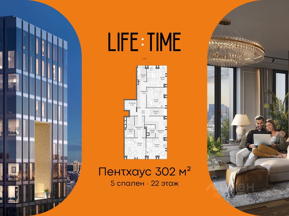 Life Time - роскошный современный квартал на Пресне, в наиболее быстро растущем премиальном районе ЦАО. Его насыщенная инфраструктура и выгодное расположение дарят время для жизни. Вы больше не тратите его на дорогу или ожидание, при этом ни в чём себе не отказывая. На территории предусмотрено всё для комфортной жизни: • двор-парк площадью 1,8 гектара с прудом и фонтанами; • Clubhouse - инфраструктурный центр в отдельном здании с исчерпывающими возможностями для спорта, отдыха и досуга только для жителей; • спортивная инфраструктура на улице и в помещении, в том числе бассейн длиной 25 метров, хот-таб, хаммам, сауна, бьюти-зона; • клубная гостиная с террасой; • всё для развития и досуга детей любого возраста, в том числе детский сад и школа. Life Time находится в центре сложившегося премиального района, в окружении многочисленных парков. Удобная транспортная доступность и прямой выезд на Звенигородское шоссе позволяют без проблем добраться до Садового кольца и Москва-Сити. Архитектурный стиль квартала - роскошный минимализм. Дома десятилетиями будут выглядеть современно. В Life Time представлен широкий выбор как квартир, так и особых форматов: двухэтажные пентхаусы с каминами и террасами, скай-виллы.