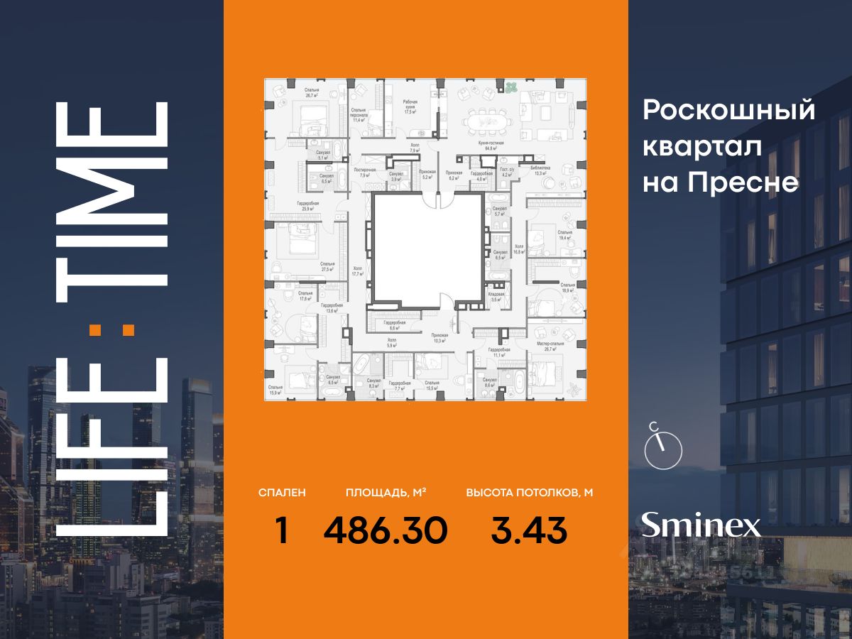 Life Time - роскошный современный квартал на Пресне, в наиболее быстро растущем премиальном районе ЦАО. Его насыщенная инфраструктура и выгодное расположение дарят время для жизни. Вы больше не тратите его на дорогу или ожидание, при этом ни в чём себе не отказывая. На территории предусмотрено всё для комфортной жизни: • двор-парк площадью 1,8 гектара с прудом и фонтанами; • Clubhouse - инфраструктурный центр в отдельном здании с исчерпывающими возможностями для спорта, отдыха и досуга только для жителей; • спортивная инфраструктура на улице и в помещении, в том числе бассейн длиной 25 метров, хот-таб, хаммам, сауна, бьюти-зона; • клубная гостиная с террасой; • всё для развития и досуга детей любого возраста, в том числе детский сад и школа. Life Time находится в центре сложившегося премиального района, в окружении многочисленных парков. Удобная транспортная доступность и прямой выезд на Звенигородское шоссе позволяют без проблем добраться до Садового кольца и Москва-Сити. Архитектурный стиль квартала - роскошный минимализм. Дома десятилетиями будут выглядеть современно. В Life Time представлен широкий выбор как квартир, так и особых форматов: двухэтажные пентхаусы с каминами и террасами, скай-виллы.