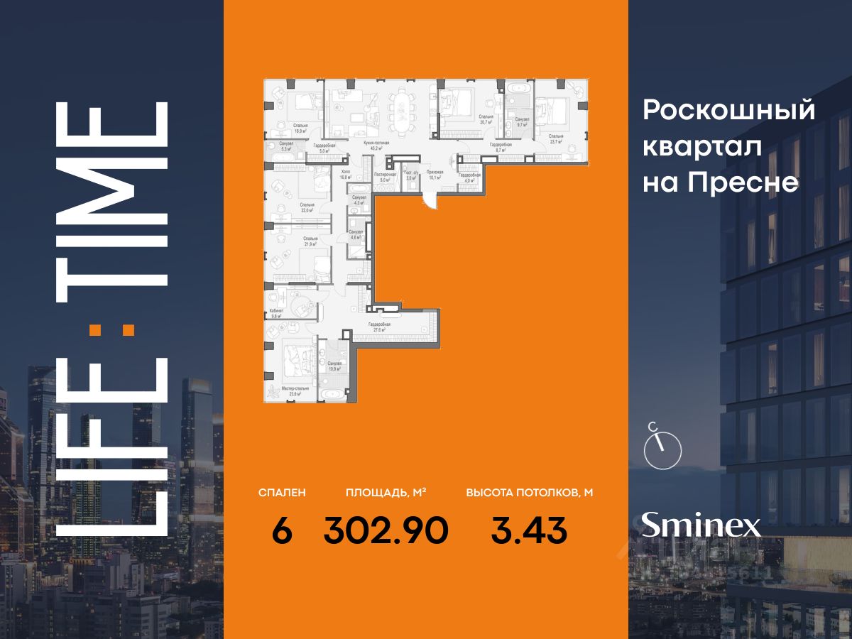 Life Time - роскошный современный квартал на Пресне, в наиболее быстро растущем премиальном районе ЦАО. Его насыщенная инфраструктура и выгодное расположение дарят время для жизни. Вы больше не тратите его на дорогу или ожидание, при этом ни в чём себе не отказывая. На территории предусмотрено всё для комфортной жизни: • двор-парк площадью 1,8 гектара с прудом и фонтанами; • Clubhouse - инфраструктурный центр в отдельном здании с исчерпывающими возможностями для спорта, отдыха и досуга только для жителей; • спортивная инфраструктура на улице и в помещении, в том числе бассейн длиной 25 метров, хот-таб, хаммам, сауна, бьюти-зона; • клубная гостиная с террасой; • всё для развития и досуга детей любого возраста, в том числе детский сад и школа. Life Time находится в центре сложившегося премиального района, в окружении многочисленных парков. Удобная транспортная доступность и прямой выезд на Звенигородское шоссе позволяют без проблем добраться до Садового кольца и Москва-Сити. Архитектурный стиль квартала - роскошный минимализм. Дома десятилетиями будут выглядеть современно. В Life Time представлен широкий выбор как квартир, так и особых форматов: двухэтажные пентхаусы с каминами и террасами, скай-виллы.