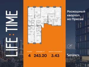 Life Time - роскошный современный квартал на Пресне, в наиболее быстро растущем премиальном районе ЦАО. Его насыщенная инфраструктура и выгодное расположение дарят время для жизни. Вы больше не тратите его на дорогу или ожидание, при этом ни в чём себе не отказывая. На территории предусмотрено всё для комфортной жизни: • двор-парк площадью 1,8 гектара с прудом и фонтанами; • Clubhouse - инфраструктурный центр в отдельном здании с исчерпывающими возможностями для спорта, отдыха и досуга только для жителей; • спортивная инфраструктура на улице и в помещении, в том числе бассейн длиной 25 метров, хот-таб, хаммам, сауна, бьюти-зона; • клубная гостиная с террасой; • всё для развития и досуга детей любого возраста, в том числе детский сад и школа. Life Time находится в центре сложившегося премиального района, в окружении многочисленных парков. Удобная транспортная доступность и прямой выезд на Звенигородское шоссе позволяют без проблем добраться до Садового кольца и Москва-Сити. Архитектурный стиль квартала - роскошный минимализм. Дома десятилетиями будут выглядеть современно. В Life Time представлен широкий выбор как квартир, так и особых форматов: двухэтажные пентхаусы с каминами и террасами, скай-виллы.