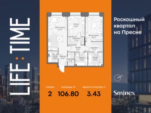 Life Time - роскошный современный квартал на Пресне, в наиболее быстро растущем премиальном районе ЦАО. Его насыщенная инфраструктура и выгодное расположение дарят время для жизни. Вы больше не тратите его на дорогу или ожидание, при этом ни в чём себе не отказывая. На территории предусмотрено всё для комфортной жизни: • двор-парк площадью 1,8 гектара с прудом и фонтанами; • Clubhouse - инфраструктурный центр в отдельном здании с исчерпывающими возможностями для спорта, отдыха и досуга только для жителей; • спортивная инфраструктура на улице и в помещении, в том числе бассейн длиной 25 метров, хот-таб, хаммам, сауна, бьюти-зона; • клубная гостиная с террасой; • всё для развития и досуга детей любого возраста, в том числе детский сад и школа. Life Time находится в центре сложившегося премиального района, в окружении многочисленных парков. Удобная транспортная доступность и прямой выезд на Звенигородское шоссе позволяют без проблем добраться до Садового кольца и Москва-Сити. Архитектурный стиль квартала - роскошный минимализм. Дома десятилетиями будут выглядеть современно. В Life Time представлен широкий выбор как квартир, так и особых форматов: двухэтажные пентхаусы с каминами и террасами, скай-виллы.