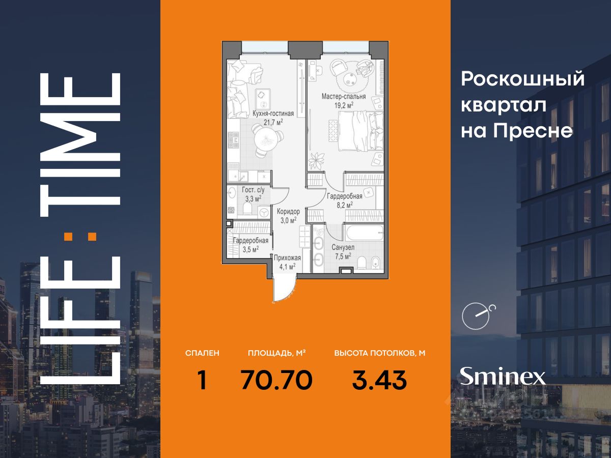 Life Time - роскошный современный квартал на Пресне, в наиболее быстро растущем премиальном районе ЦАО. Его насыщенная инфраструктура и выгодное расположение дарят время для жизни. Вы больше не тратите его на дорогу или ожидание, при этом ни в чём себе не отказывая. На территории предусмотрено всё для комфортной жизни: • двор-парк площадью 1,8 гектара с прудом и фонтанами; • Clubhouse - инфраструктурный центр в отдельном здании с исчерпывающими возможностями для спорта, отдыха и досуга только для жителей; • спортивная инфраструктура на улице и в помещении, в том числе бассейн длиной 25 метров, хот-таб, хаммам, сауна, бьюти-зона; • клубная гостиная с террасой; • всё для развития и досуга детей любого возраста, в том числе детский сад и школа. Life Time находится в центре сложившегося премиального района, в окружении многочисленных парков. Удобная транспортная доступность и прямой выезд на Звенигородское шоссе позволяют без проблем добраться до Садового кольца и Москва-Сити. Архитектурный стиль квартала - роскошный минимализм. Дома десятилетиями будут выглядеть современно. В Life Time представлен широкий выбор как квартир, так и особых форматов: двухэтажные пентхаусы с каминами и террасами, скай-виллы.