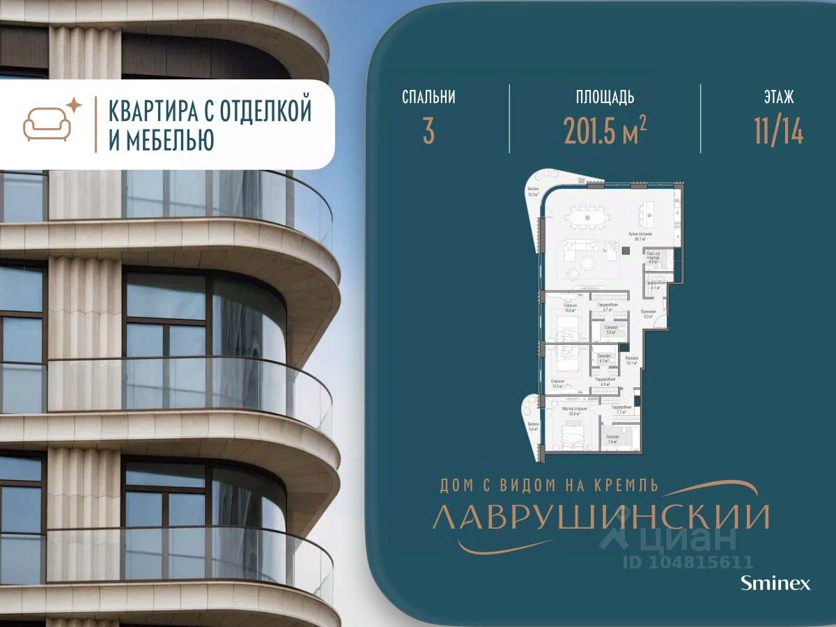 "Лаврушинский" - бескомпромиссный дом с лучшими видами на Кремль. Благодаря расположению всего в одном километре от Кремля, своей высоте и малоэтажной окружающей застройке, из квартир открываются поразительные прямые виды на главные достопримечательности центра Москвы, включая храм Христа Спасителя и собор Василия Блаженного. Расположение в глубине квартала, посередине парка, дает удивительное для центра ощущение тишины и простора. На закрытой территории находится самый большой на элитном рынке собственный ландшафтный парк площадью 1,4 га с фонтаном, ручьём, зонами для воркаута и тихого отдыха. KIDS LAB: развивающая детская площадка на улице и игровая комната в помещении. FIT LAB: фитнес-клуб с 25-метровым бассейном, beauty room, доступные только для жителей. В проекте уникальный выбор квартир с просторными балконами, пентхаусов с террасами, бассейнами и каминами, максимальными видовыми характеристиками, а также роскошных вилл. Всего - 153 квартиры и 101 продуманное планировочное решение. Высота потолков составляет от 3,5 до 8,25 м. В доме предусмотрен 2х-уровневый паркинг на 279 машино-места. В доме предусмотрен полный комплекс систем комфорта, включающий приточно-вытяжную вентиляцию с тонкой фильтрацией с принципом забора воздуха с высоты 50 метров для повышения продолжительности жизни, отдельный сервисный лифт для обслуживающего персонала и другие современные системы.
